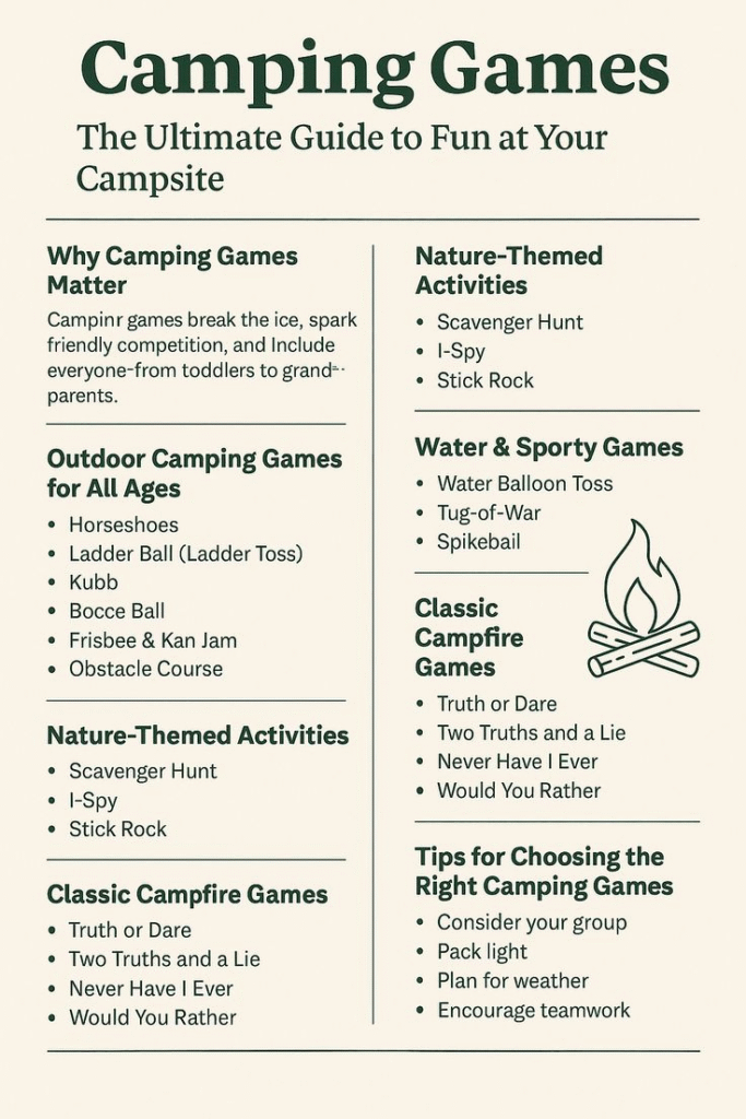 For more outdoor activities that complement camping games, check out our guide to things to do while camping for additional adventure ideas.