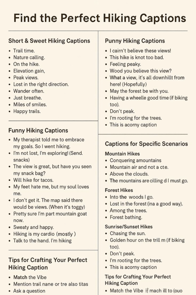 Last weekend, I stood on a gorgeous mountain peak after a challenging 8-mile hike, phone in hand, staring at the most incredible sunset I’d ever seen. But when it came time to post the photo, I found myself completely stumped. How do you capture the feeling of sweaty accomplishment, natural beauty, and pure adventure in just a few words? That moment made me realize that finding the perfect hiking caption can be just as challenging as finding the perfect trail.