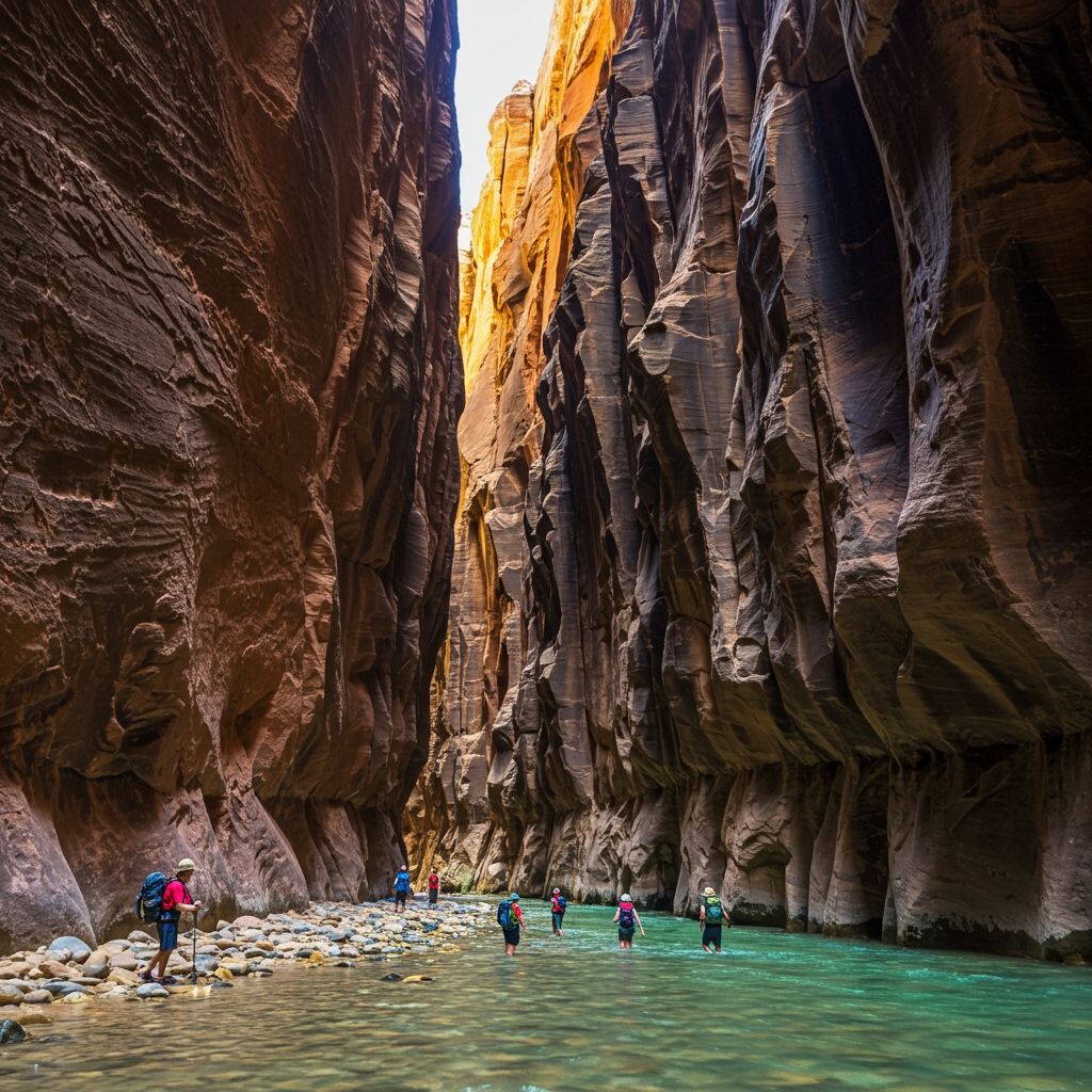 - The Narrows: Hike right through the Virgin River, surrounded by towering canyon walls. Go as far as you like—many turn around after a few miles, but the full 16-mile trek is a bucket-list challenge. Water shoes and a walking stick are highly recommended.