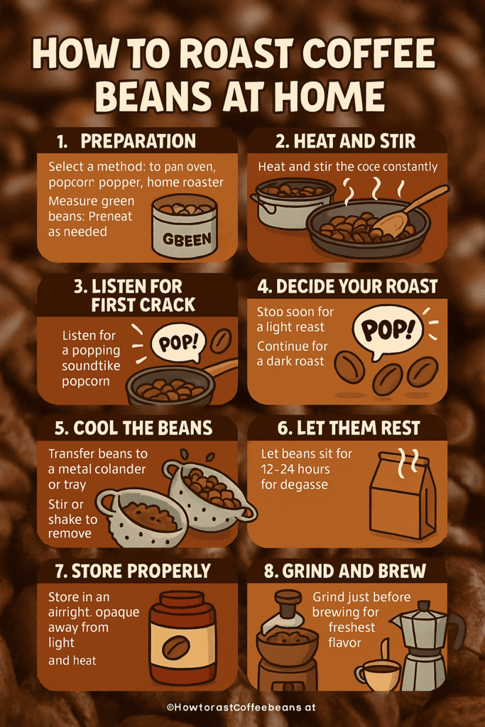 This isn’t a walk-away-and-wait operation. Stir the beans non-stop, scraping the bottom and edges to avoid burning. You’ll start to hear a grassy, toasty aroma within minutes—don’t panic if the beans turn yellow first.