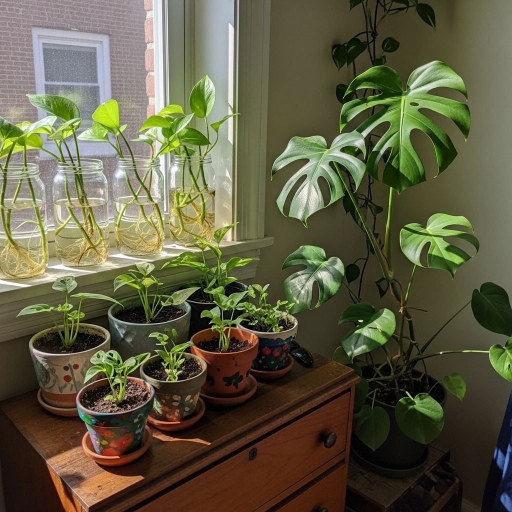 Propagation provides free plants from cuttings. Pothos, philodendron, string of hearts, and many other plants root easily in water or soil. I’ve filled my apartment and gifted dozens of plants to friends entirely from propagation. Ask plant-owning friends for cuttings, or check local plant swap groups on social media.
