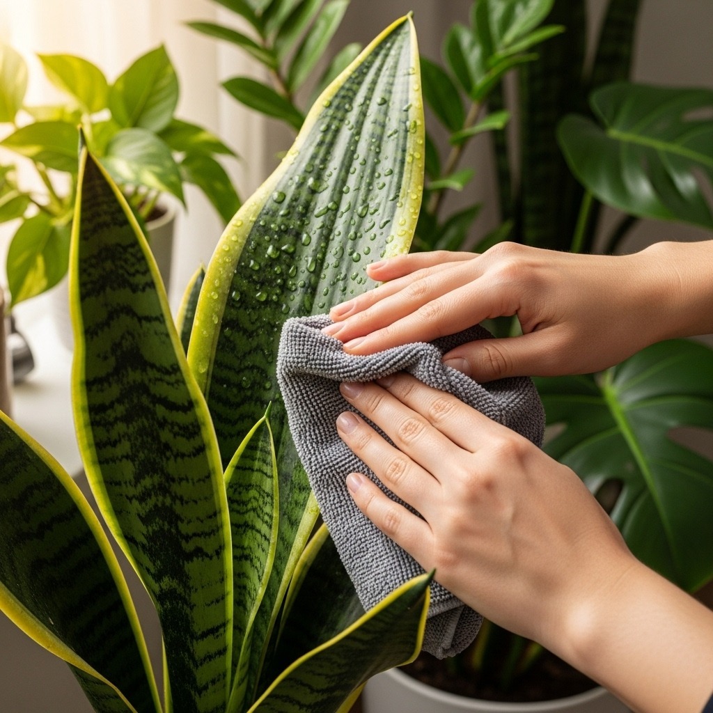 Dust accumulates on leaves over time, blocking light absorption and reducing photosynthesis. Wipe leaves monthly with a damp cloth or give plants a gentle shower.