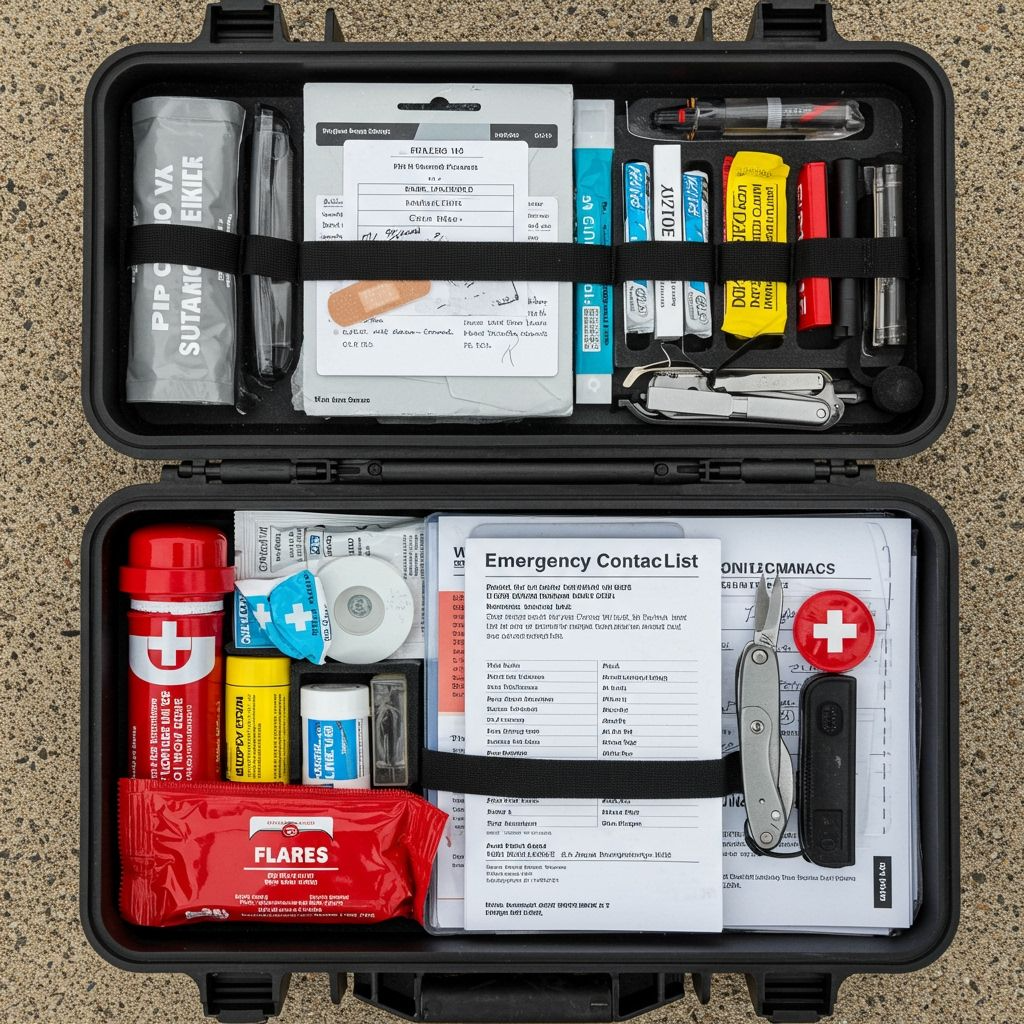 An emergency road kit includes flares or reflective triangles, jumper cables, basic tools, and emergency contact information. RV breakdowns often occur in remote areas where help may be delayed.
