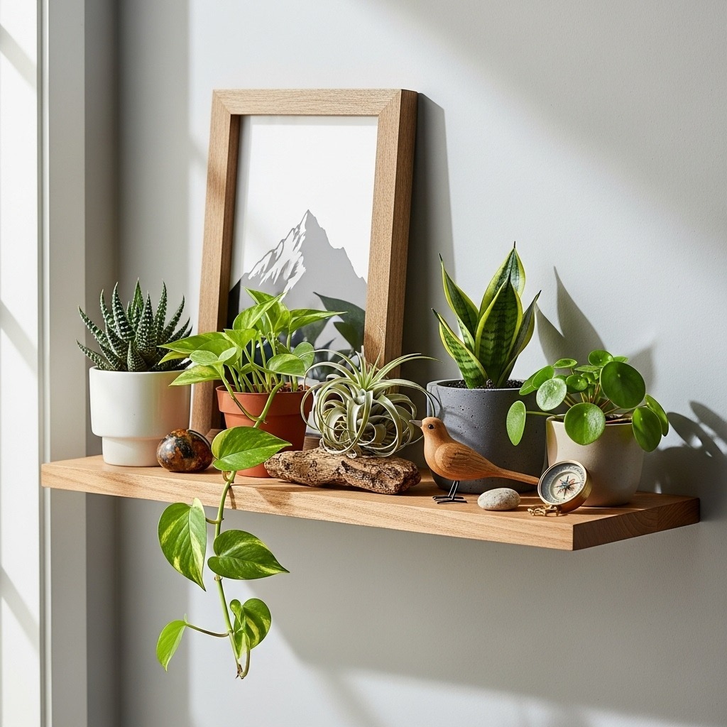 Vertical Gardening: Mount hanging plant baskets at different heights to create living walls. Trailing pothos and spider plants cascade beautifully without consuming floor space.