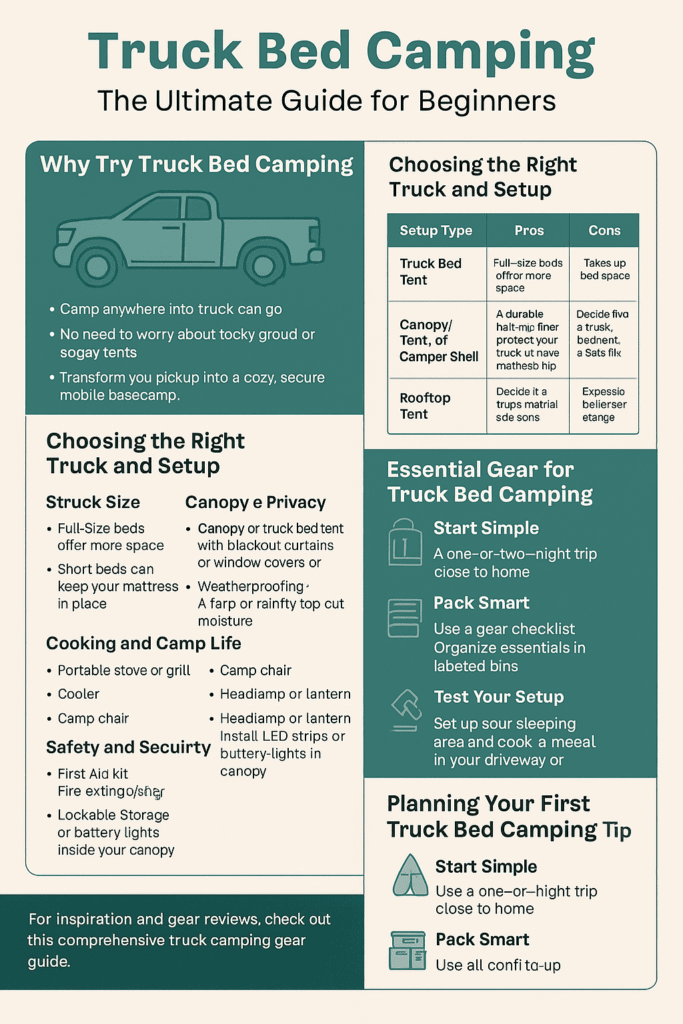 For many, traditional tent camping means pitching on uneven ground, dealing with unexpected rain, and packing up a soggy mess. RVs offer comfort but limit where you can go. Truck bed camping, however, provides a perfect middle ground: the comfort and security of a solid roof over your head, combined with the go-anywhere capability of your truck. If you’re new to the outdoor world, getting started with camping for beginners can feel daunting, but a truck bed setup simplifies much of the process. Whether you’re heading to a remote fishing spot, hitting a national park, or just escaping for a weekend, a well-planned truck bed camping setup can transform your experience.